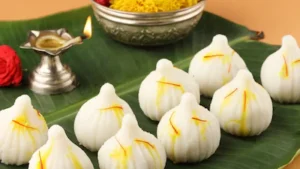 भगवान गणेश को मोदक सबसे प्रिय है। कहा जाता है कि गणेश जी को एक बार अनगिनत पकवानों में से सबसे अधिक मोदक पसंद आया और तभी से यह उनका प्रिय भोग माना जाने लगा। इसीलिए इस दिन खासतौर पर मोदक, लड्डू, पूरण पोली, नारियल और फल का प्रसाद चढ़ाया जाता है।